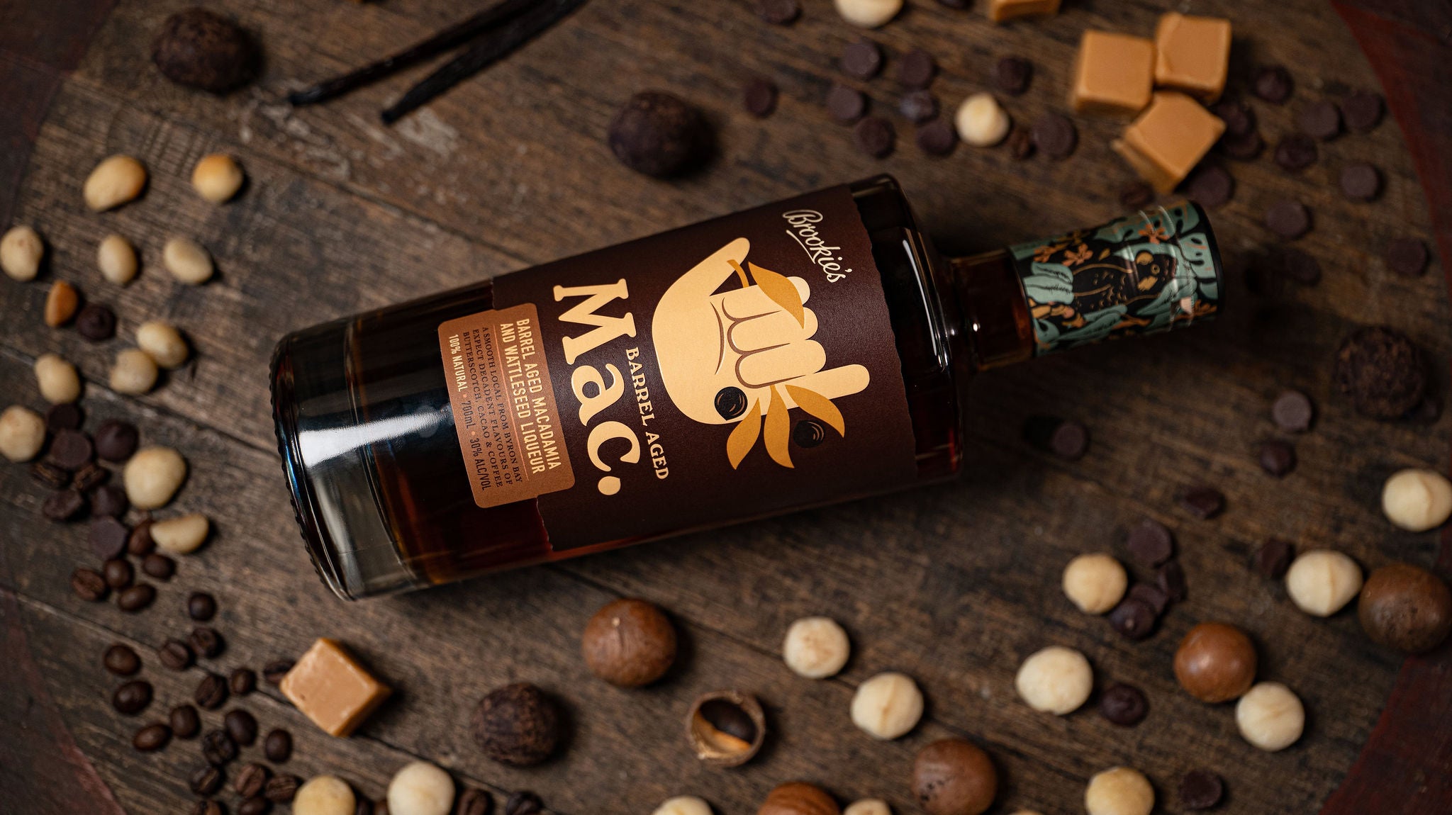 We began to wonder what would happen if we laid Mac. Liqueur to rest in an ex-bourbon cask and many months later we can reveal that the result is a mature and rich variation of everyone’s favourite macadamia liqueur, for all you darker, more complex flavour- lovers. The spirit is bursting with flavours of luxurious crème brûlée, rich caramel, macadamia fusion with a cacao, coffee and that quintessential vanilla oak finish.