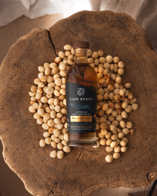 We've matured this single malt whisky using the world’s best roasted macadamia and wattle seed liqueur. The Mac. liqueur has imparted decadent notes of butterscotch, coffee and dark chocolate to season our ex-bourbon casks ready for maturing this malt whisky within the subtropical rainforest.